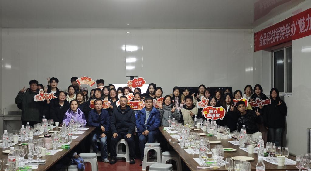 2024年10月23日,食品科技学院在葡萄酒实训基地组织学生举行“龙行高校”中国葡萄酒校园公开课第八讲——“陇原古韵,葡酒新梦”。