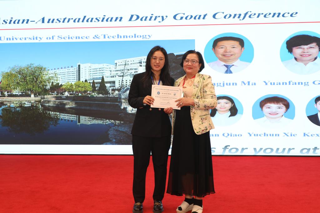 2024年11月20日到24日,由西北农林科技大学主办的“第六届亚澳奶山羊大会”于陕西杨凌召开。来自全球10个国家的170多位专家学者、企业行业代表参会,共同探讨奶山羊产业的最新研究成果和未来发展方向。本届论坛的主题是“奶山羊绿色养殖与优质羊奶生产”。永利动物科技学院青年教师邵钺馨博士参加论坛并作“Function and regulation mechanism of CTCF on lactoferrin synthesis in dairy goat”大会报告。