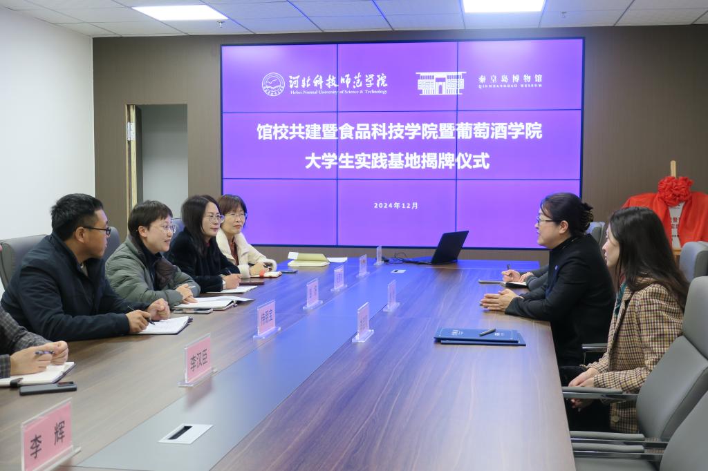 2024年12月10日下午,食品科技学院党委与秦皇岛博物馆 “馆校合作共建”座谈会暨大学生实践基地揭牌仪式在秦皇岛博物馆举行,食品科技学院领导班子、秦皇岛博物馆副馆长孙昕出席签约仪式,食品科技学院部分教师及秦皇岛博物馆职工代表参加仪式。
