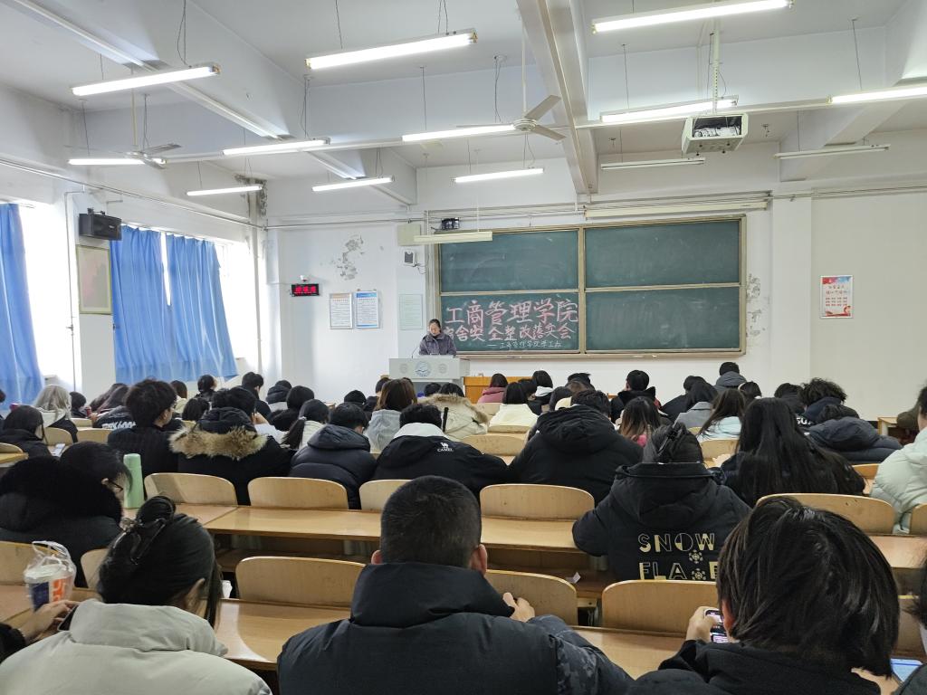 近日,为切实强化学生宿舍安全管理工作,守住宿舍安全红线和底线,保障学生人身、财物、财产安全,工商管理学院组织学院全体班长、宿舍长召开学生宿舍安全整治教育落实会。