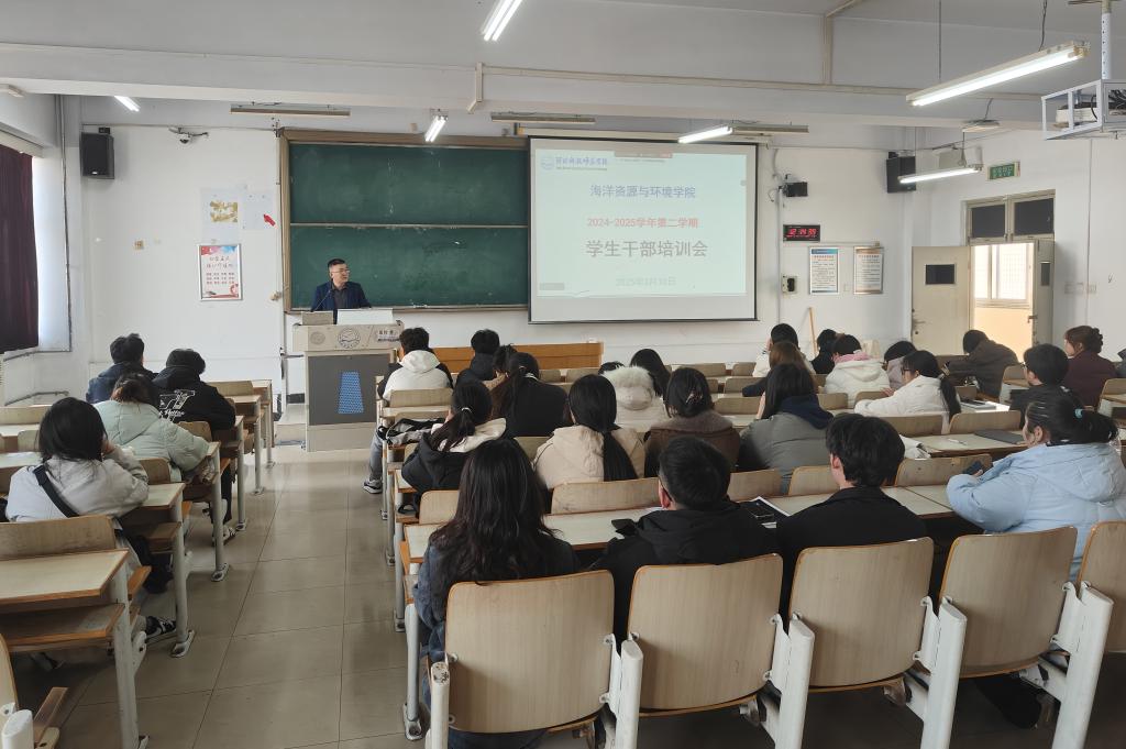 2025年3月10日,为提升学生干部综合素养,加强学生干部队伍建设,海洋资源与环境学院召开学生干部培训会议。学院各专业班级班长、团支书、专职辅导员、学工办、团委等70余人参加会议,会议由学院学生工作负责同志主持。