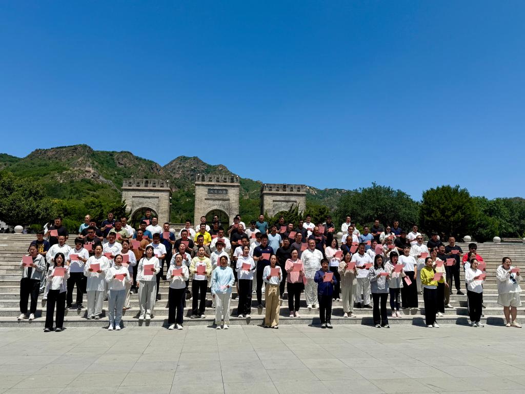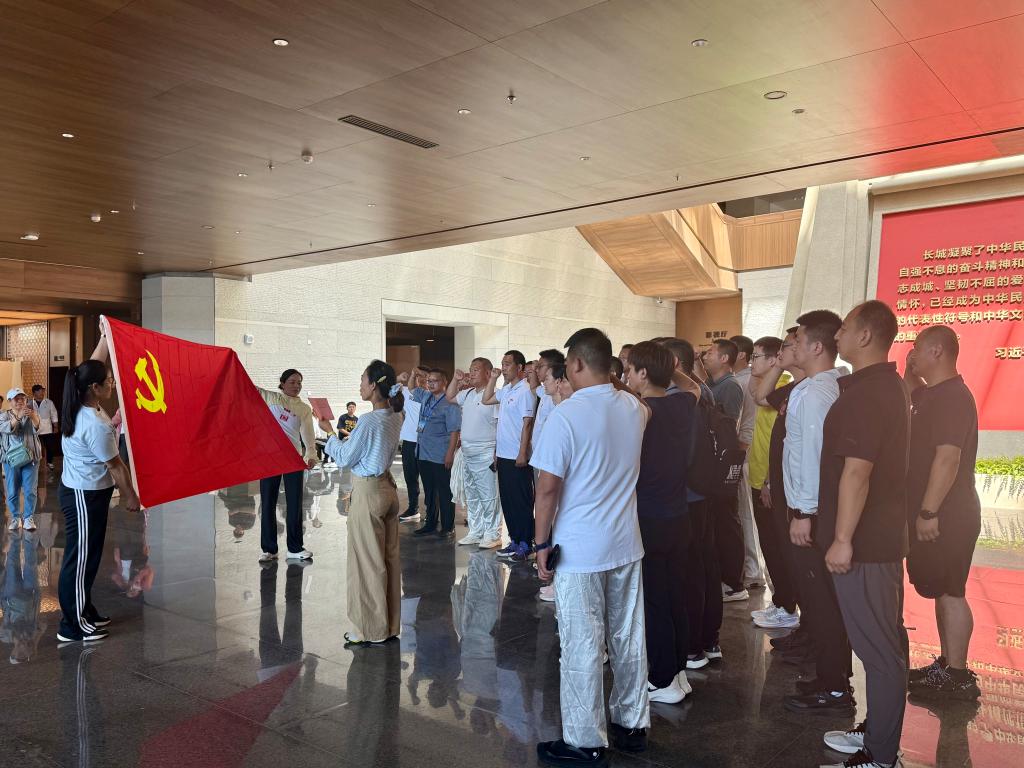 在中国长城博物馆,两千余年的历史文物静静陈列:青铜箭镞的斑驳绿锈、烽火台残砖的深刻痕迹,串联起从嘉峪关戈壁到山海关惊涛的壮阔图景。党员教师们沿时空长廊前行,在历史与现实的交织中,感受长城作为军事防御工程与民族史诗的双重意义。随后,他们列队肃立,面向党旗重温入党誓词,铿锵誓言与“古代戍卒号角”的历史回响共鸣,让教师们深刻体会革命先辈以血肉筑就新中国的担当。