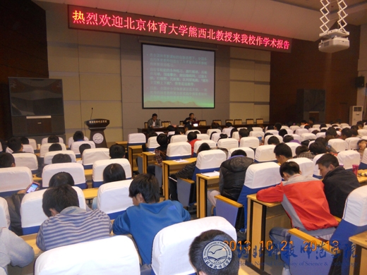 2013年10月21日,北京体育大学博士生导师熊西北教授应邀来永利作题为《对中国体育问题的新思考》的学术报告。体育系副书记、副主任郭立昌,部分教师及体育专业400多名本专科生聆听了本次报告会。报告会由体育系主任陈庆合教授主持。