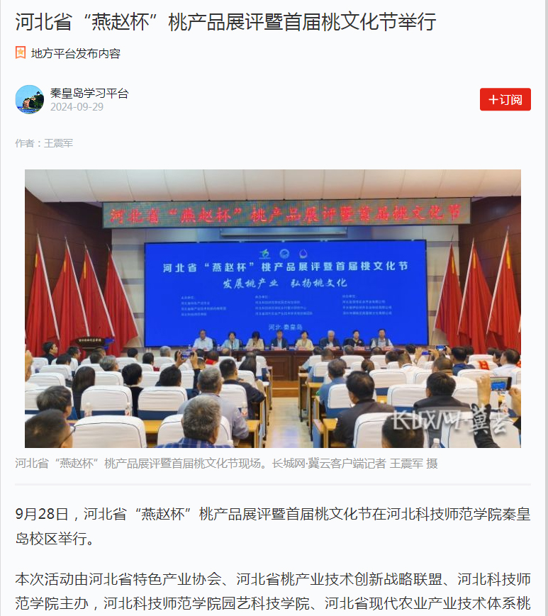 2024年9月29日,学习强国学习平台发布河北省“燕赵杯”桃产品展评暨首届桃文化节在304永利集团登录入口举行活动情况。