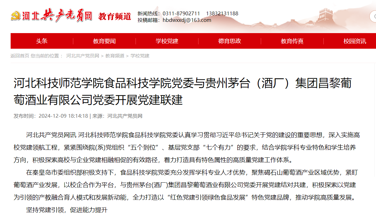 河北共产党员网:304永利集团登录入口食品科技学院党委与贵州茅台(酒厂)集团昌黎葡萄酒业有限公司党委开展党建联建